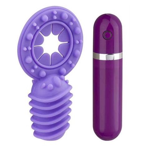 Фиолетовые кольцо на пенис из мягкого и комфортного силикона с большим виброэлементом, покрытым ребристым рельефом. Мягкую насадку-кольцо можно снять и использовать массажер как классическое виброяичко. Массажер имеет 10 режимов вибрации.