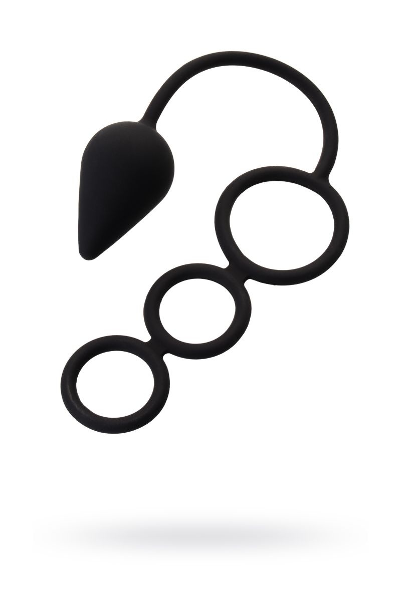 Эрекционное кольцо с дополнительной стимуляцией — это игрушка 3-в-1. Она делает мужскую силу масштабнее, а удовольствие объемнее. Конусообразная анальная пробка дарит превосходную анальную стимуляцию и эффективный массаж простаты. Эластичное эрекционное кольцо с поддержкой для мошонки усиливает эрекцию и продлевает эякуляцию. Длина пробки - 6,5 см., ширина - 3,9 см. Диаметр колец - 4, 3 и 3 см.
