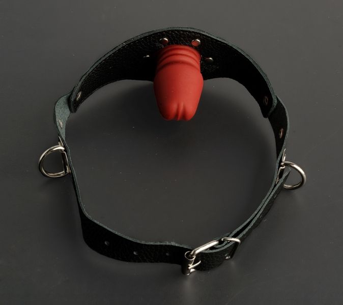 Основа кляпа изготовлена из натуральной кожи. Кляп в виде фаллоса изготовлен из натурального гипоаллергенного латекса. Размер универсальный.