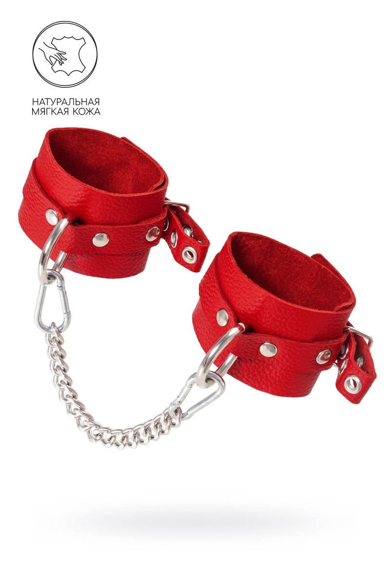 Самый мягкие оковы из всей линейки российского производителя Pecado.Сексуальный атрибут изготовлен из безопасной и натуральной кожи. Насыщенно красный цвет и терпкий аромат материала повышают градус возбуждения в процессе ролевых игр. Манжеты и ремешки девайся очень тактильно приятные. Они не мнутся, не тянутся и обладают повышенной износостойкостью. Вся фурнитура высокого качества. На тонких ремешках имеются отверстия с люверсами, для подбора нужного обхвата. Благодаря стальной застежке аксессуар легко застегивается и расстегивается. Между собой оковы присоединяются с помощью карабинов и короткой цепочки. При необходимости ее можно снять и заменить на более длинный вариант. Используется для того, чтобы обездвижить партнера и зафиксировать ноги в необходимом положении. Подходит как опытным, так и начинающим парам. Длина манжет – 25 см, ширина - 5,5 см. Длина сцепки – 24 см.