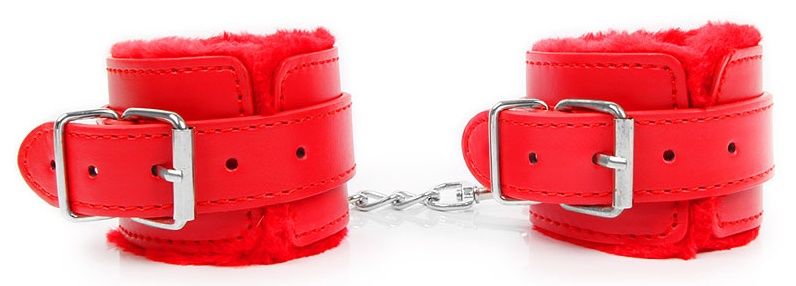 Великолепные наручники под кожу для любителей БДСМ-игр! Внутренняя сторона изделий отделана мехом, который препятствует натиранию кожи. Размер наручников регулируется с помощью ремней. Наручники соединяются между собой металлической цепочкой.