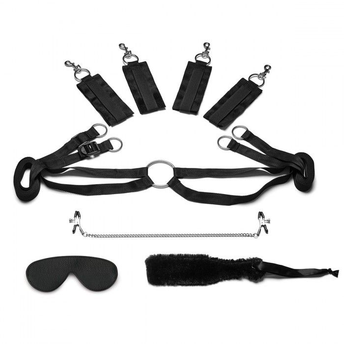 Подарите своему любовнику мягкую и чувственную игру, сделав его своим рабом с помощью этого плюшевого набора, который включает в себя фиксатор на кровать с подкладкой из искусственного меха, чтобы надежно и комфортно удержать вашего счастливого покорного. Пушистая маска для глаз мягко закрывает их, пока вы экспериментируете с восхитительным щекотанием нежной шлепалки и ощущением зажимов на сосках. Когда вы закончите играть, просто положите свои любимые игрушки в прилагаемую сумку для хранения. В комплекте: фиксатор на кровать с 4 манжетами, маска, шлепалка, зажимы на соски, сумка для хранения.
