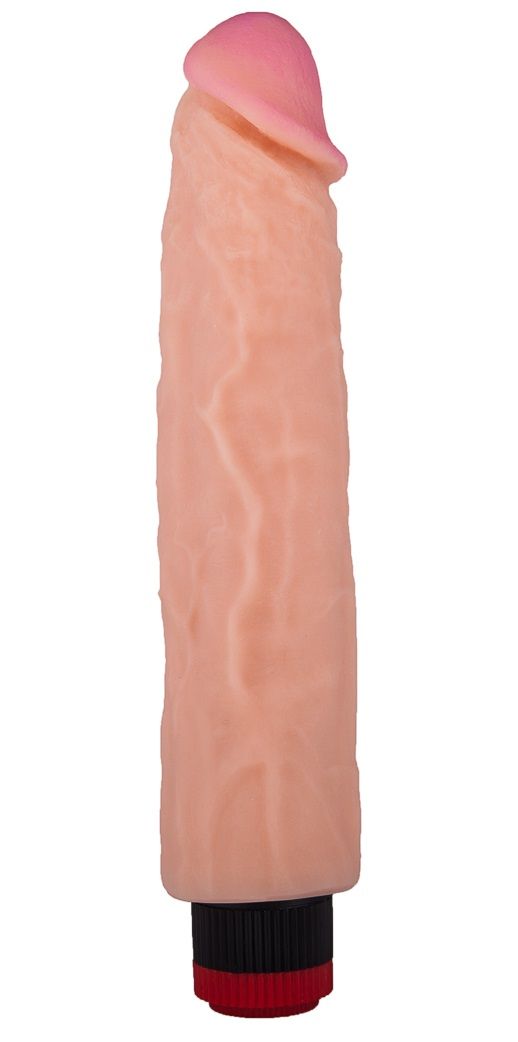 Одни только размеры этой реалистичной игрушки уже распаляют сексуальное желание. Большой податливый ствол с розовой головкой и пышными венками обещает все 33 удовольствия от проникновений в лоно. Игрушка выполнена из материала нового поколения – неоскин. Именно поэтому вибромассажёр так приятен на ощупь – будто настоящий член. Встроенный пульт управления в виде колёсика позволит регулировать степень вибрации - от ммм до ах! .